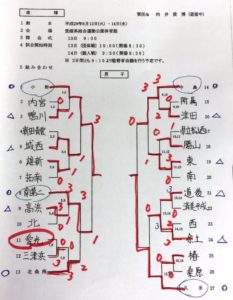 結果は残念ながら、団体戦、個人戦とも初戦敗退に終わりました。次の11月の新人戦にはがんばりましょう。