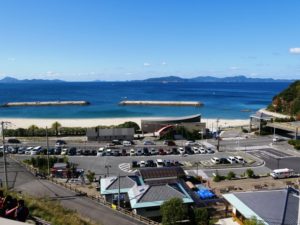 今日はこれで終了。体育館から見下ろした北条の海岸。夏は海水浴場になる。