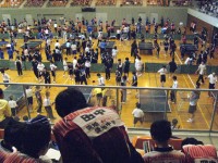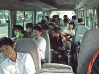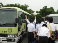 高校2年生は北海道修学旅行中です。高校1年生の1チーム(5名)、中学の3チーム(18名)が参加しました。西条までは学校のマイクロバスを使用しました。