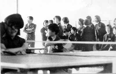 今から20年近く前、「卓球部報」という試合結果や部員の感想などをのせたパンフレットを作っていた時期があった。以来、全く作成していない。記事を集めただけにおわったものもある。 ホームページ作成を機会に少しずつ、復刻していきたい。 写真は1970年秋の新人戦。誰が写っているのか不明だが、たぶん17期生が中2のときのもの。 |