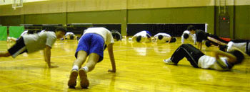 ひさしぶりに筋力トレーニングもやる。腕立て伏せと腹筋と背筋。ひとり別メニューに挑戦する部員が1名。