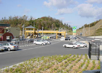 グランドを去り、センターにもどるのだが、途中国道196号線を横切らないといけない。ちょうどここには「道の駅」があり、レストランなどもあるのだが、それを見ないふりをして歩道橋をわたっていくのである。(昔はこのあたりにセンターのプールがあったのだが・・・)