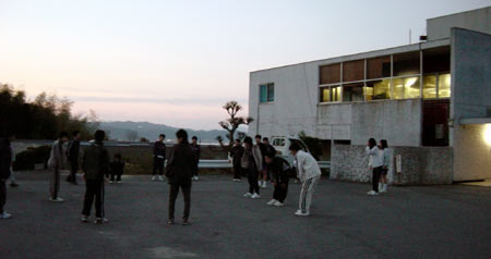 この時間はまだ暗い。しかし、体操をしている内に、しだいに明るくなってくる。