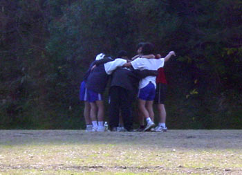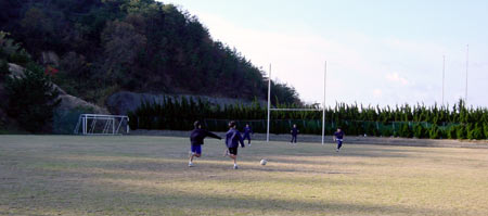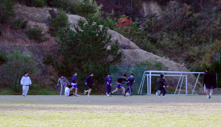 ここの施設は山側にサッカーグランドとラグビーグランドがあり、体育館が使用できない3日目の午前中はラグビーグランドでサッカーの試合をした。(これも伝統?)
