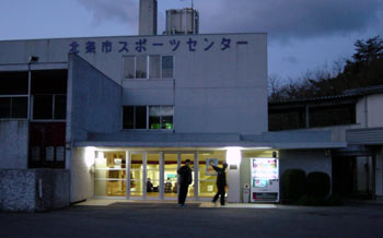 ここの体育館はバスケットコート1面+αの広さだが、卓球台が10台もあるため、卓球部の合宿には最適である。部員は19名が参加したので、台は9台使用した。