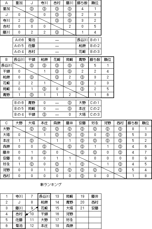 A班とB班の入れ替え戦は、別の組み合わせで実施していたが、組み合わせに誤りがあったため、やり直し。