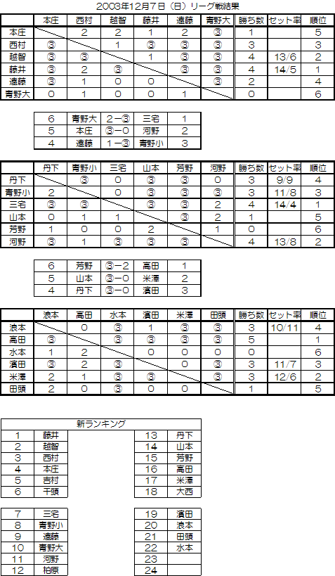 2003年12月7日(日)リーグ戦