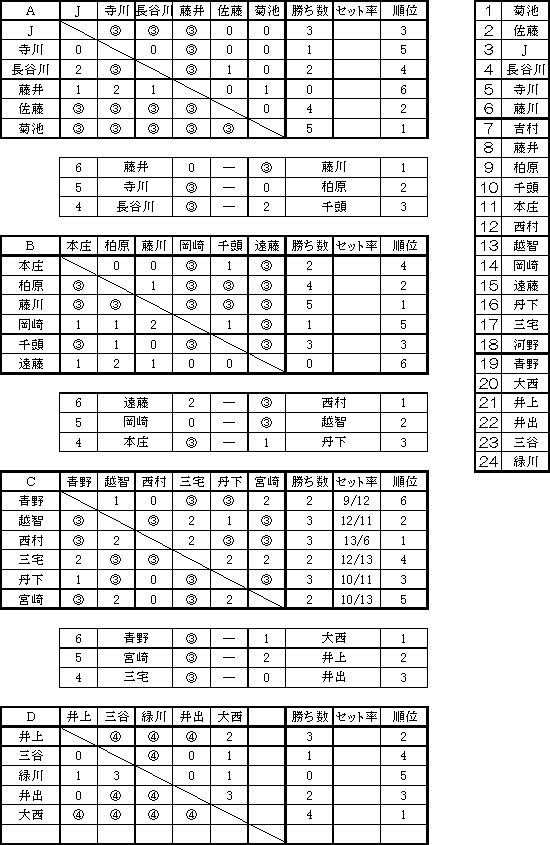 | ↑千頭対西村の入れ替え戦。フルセットの接戦になった。 | |||||||||||||||||||