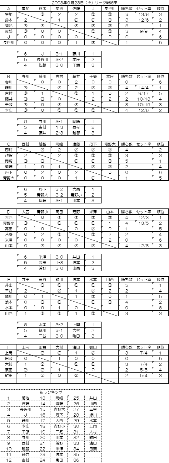 2003年9月23日(火)リーグ戦