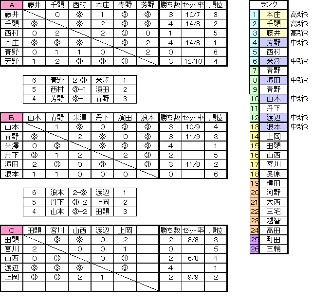高校・中学のレギュラーは、高校3人、中学6人。(次のリーグ戦までの暫定レギュラー)