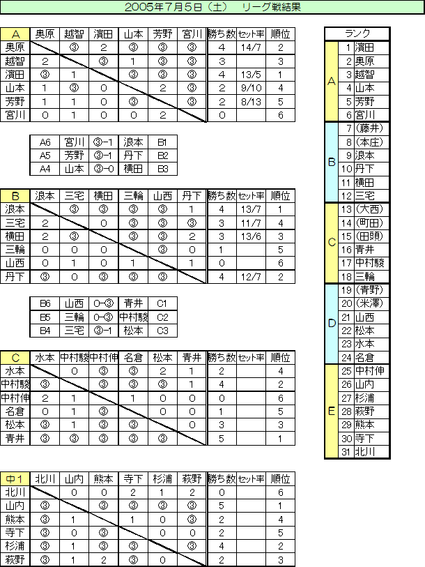 欠席者は、それぞれ下のリーグに自動的に入る。