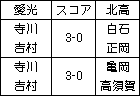 | 団体戦最後のダブルス。愛光のペアは団体の勝利がなくなったものの、最後までねばり強く試合をした。最初の2セットを相手にとられたが、そのあと3セットを取り返し、逆転勝ち。 | ||||||||||