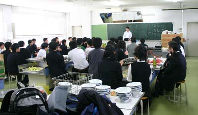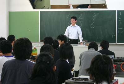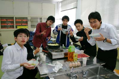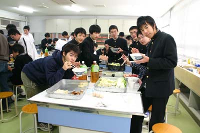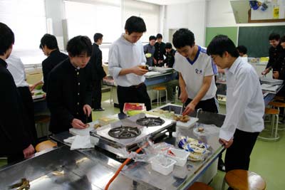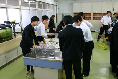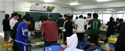 2005年2月27日(日)に高2の追い出し会を実施した。この日は、国公立前期入試の翌日ということもあり、入試を終えて一段落した高3生(47期)もやってきて、いままでになく、大人数の会になった。日曜日の午後ということもあり、学校はガランとしていたが、会場の生物実験室だけが、にぎやかだった。会は午後12時すぎから準備を開始し、午後3時すぎに後かたづけを完了、その後、例によって、男子部員は記念サッカー大会へと向かっていった。 |