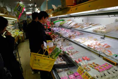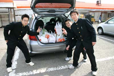 食材の調達は午前11時開始。高1の西村・本庄・奥原(全員寮生)が集合し、昨年もお世話になった、安さで有名なジャンボ市へと向かった。なにせ、40人近い人数のすき焼きの食材調達であるし、そもそもふだんの生活で、食材調達自体あまり経験はないため、なかなか見当がつかなかったようだl。高1横田が前日に作成したプランに従って、若干修正を加えつつ、購入していった。 |