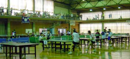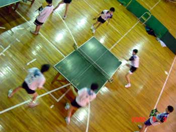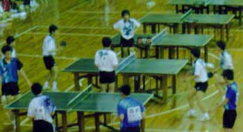 たぶん菊池・佐藤ペアの4回戦。相手は工業高校ペア。佐藤のスマッシュがネットに炸裂しているところ。 |