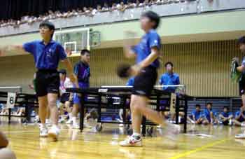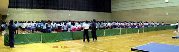 | 中学総体市大会は今年、会場が砥部の近くの県総合運動公園体育館サブアリーナに変更になった。大きな体育館のため、昨年まで男女別会場だったのが、今年は合同の大会となった。本校の卓球部は団体戦、および個人シングルス4名、個人ダブルス2組が参加した。初日、6月12日は団体戦、2日目の13日は個人戦が行われる。 | ||||||||||||||||||||||||||||||||||||||||||||||||||||||||||||||||||||