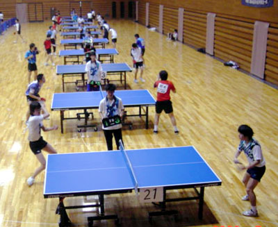 | 寺川・Jペア(手前右)。個人ダブルスで新田ペアと戦う。 | |||||||||||||||||||||||||||||||||||||||||||||||||||||||||||||||||||||||||||||||||||||||||||||||||||||||||||||||||||||